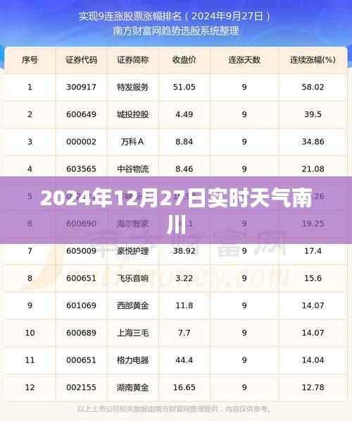 随着季节的脚步逐渐迈向冬季的深处,南川区的天气也迎来了新一轮的变化,在这个寒冷的冬日里,我们为大家带来关于南川区在2024年12月27日的实时天气情况,让我们一同了解这一天的气象特点,为日常生活和工作做好准备。
